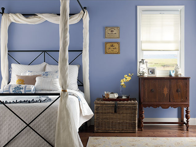La pintura de color lavanda combina la energía del rojo y la calma del azul. Este color tan especial se inclina más hacia su base azul, trayendo una energía que calma una habitación – es perfecto para los espacios en los que desea relajarse y rejuvenecer, como un dormitorio o baño.
