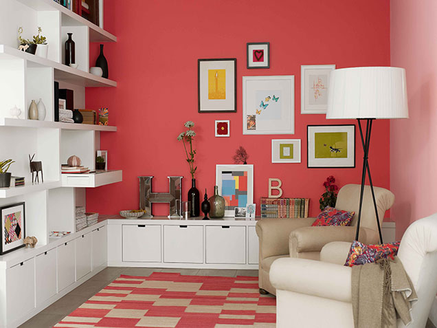 Atrevido, potente y atractivo las paredes de color rojo brillante estimularán, emocionarán e inspirarán la confianza, mientras que las tonalidades más profundas evocan sentimientos de riqueza y romance. Es recomendable utilizar la pintura de color rojo en las salas de estar, cocinas, salas de recreación, incluso un dormitorio – cualquier espacio en el que deseas sentirse con energía.